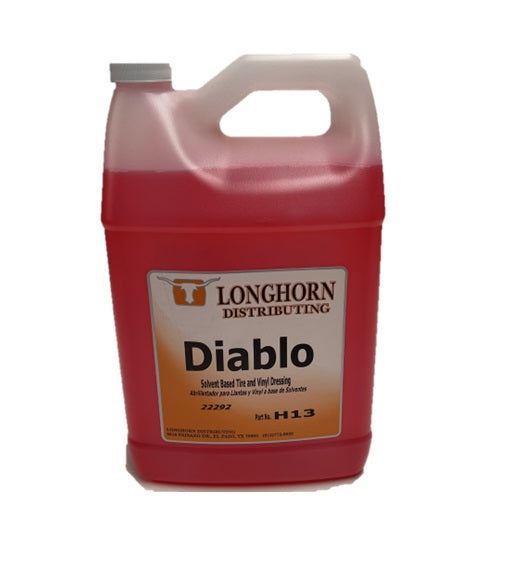 Diablo is a solvent based silicone dressing for both exterior and interior surfaces which provides an excellent shine and long lasting protection from the sun and heat. Apply to tires, vinyl dash, rubber moldings. and exterior trim to restore a like new luster.