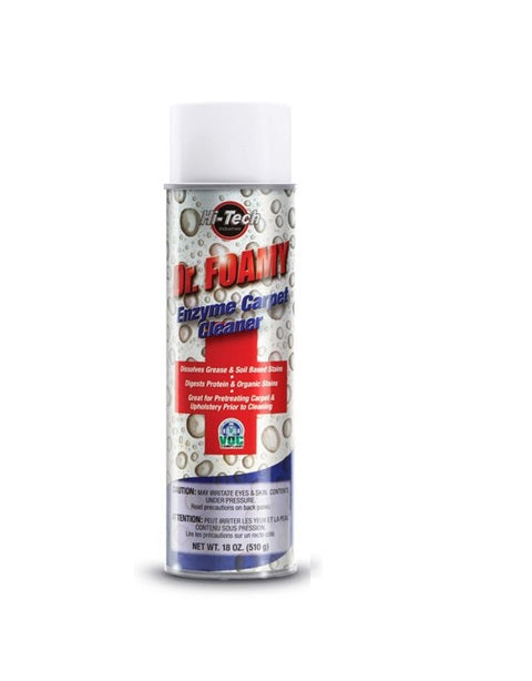 Dissolves grease and soil based stains. Digests proteins and organic stains. Great for pretreating carpet and upholstery prior to cleaning. Dr. Foamy goes right to work on stains for many types. It dissolves grease, dirt , and oil based stains and actually digests stains such as blood, urine, cosmetics, coffee, milk, food, wine, pet stains, and even red stains from fruit juice.