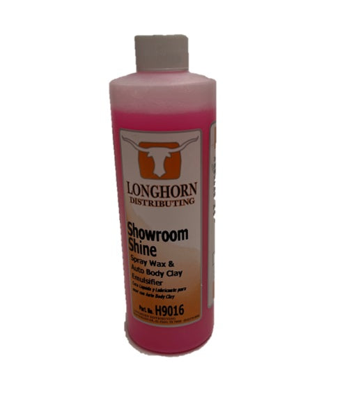 Showroom Shine is a quick and easy spray wax that is great for touching up smears, dirt, fingerprints, and smudges on your car's paint, chrome, trim, vinyl, and glass, works wonders in a showroom, on a lot, or in your garage. Also use as an emulsifier for auto body clay bars, when removing overspray or residue from a painted surface.
